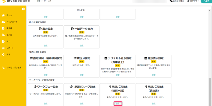 サービス設定, ワークフロー, 各種設定