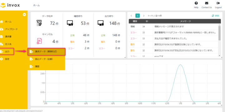 データの出力, 請求書のスキャン・アップロード, 請求書のデータ化, 請求書のデータ化結果
