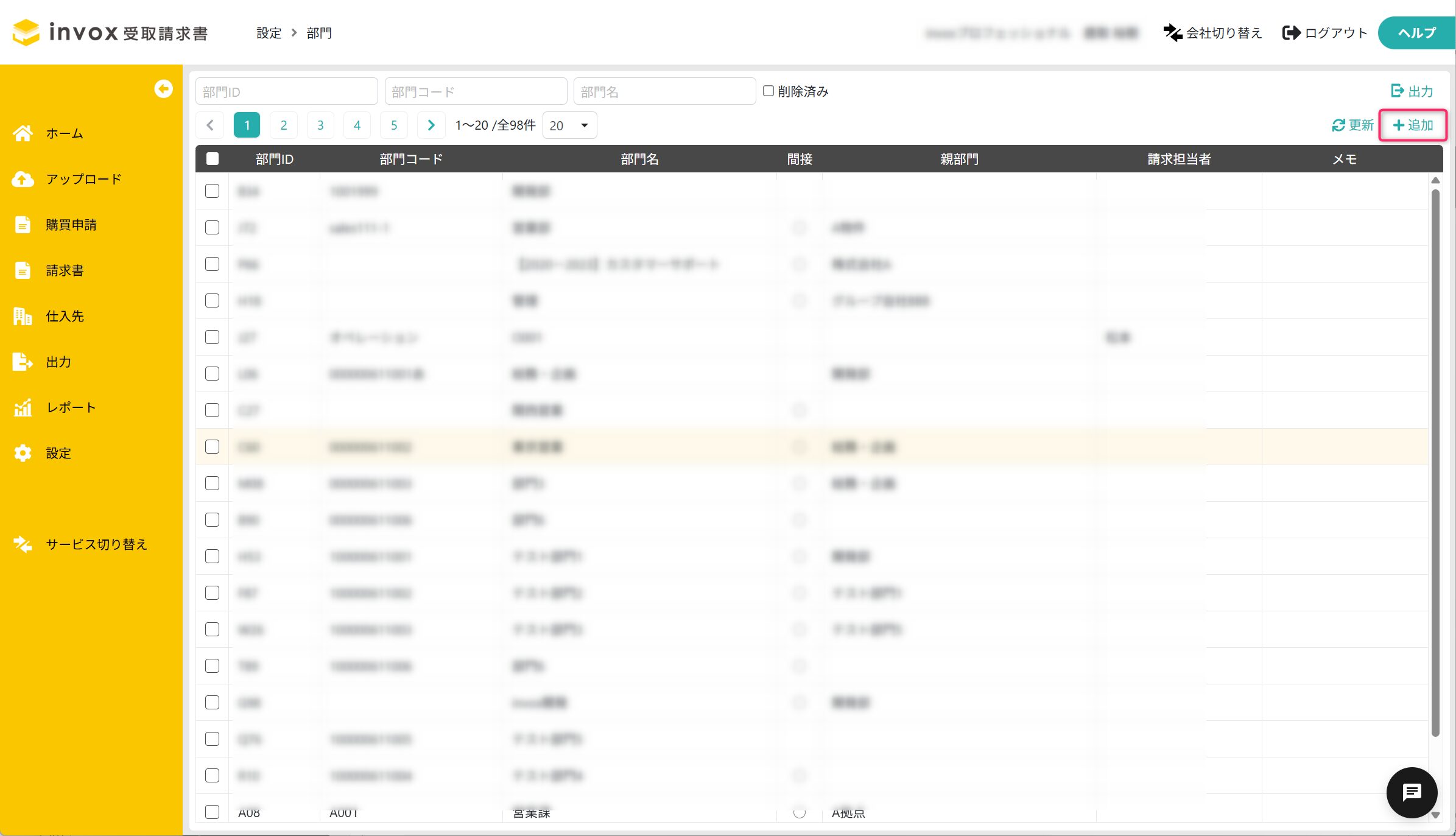 なお、複数のinvoxサービスをご利用の場合、部門マスタは全サービスで共通です。