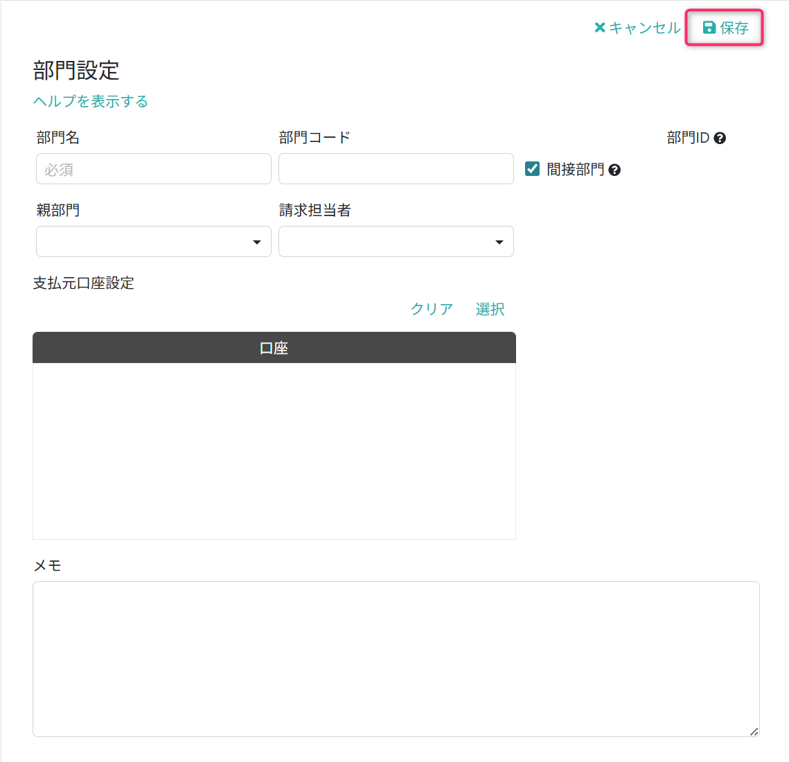 会計ソフトと連携する場合は、会計ソフト側の部門マスタと同じコードを設定してください。
