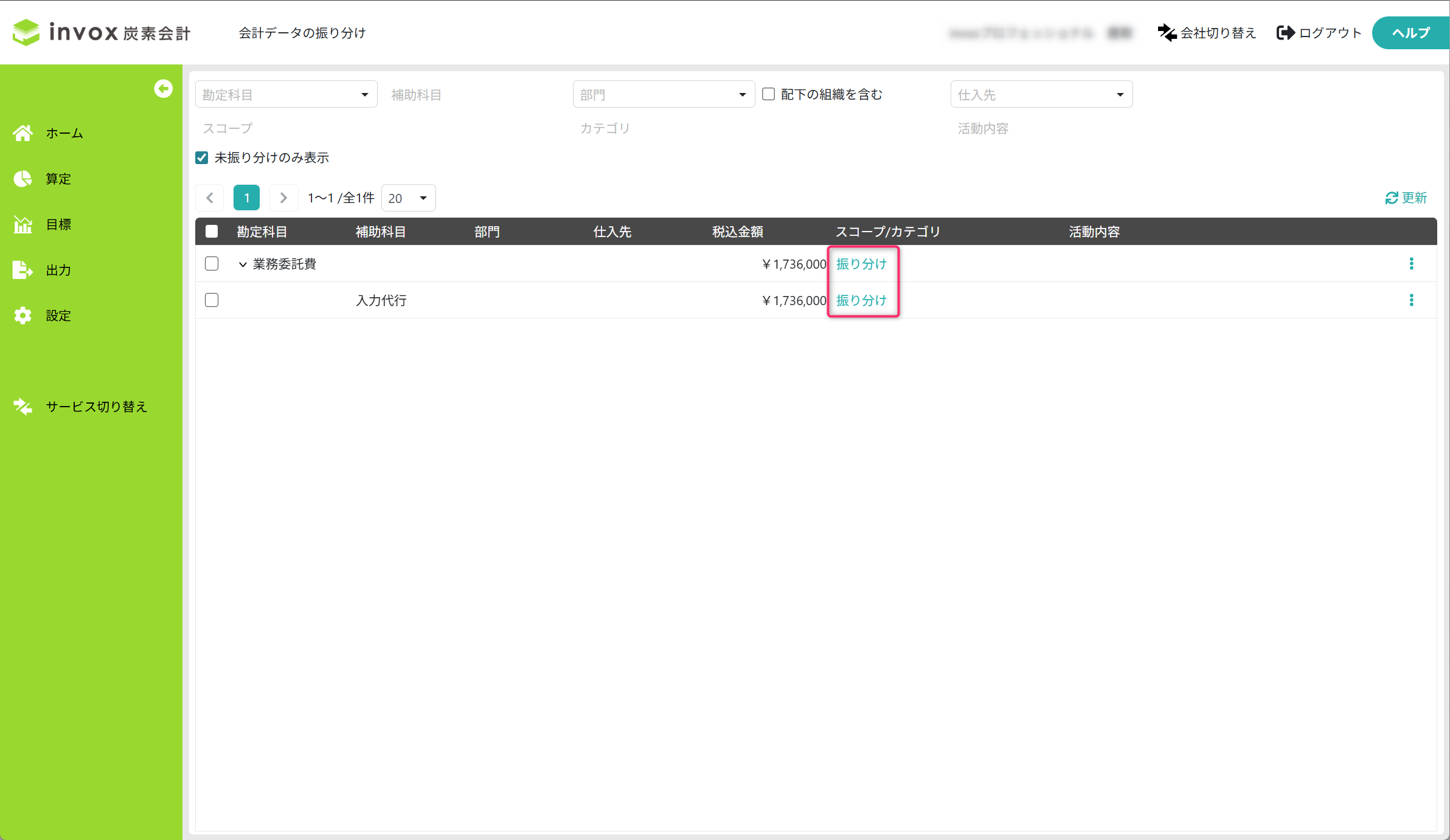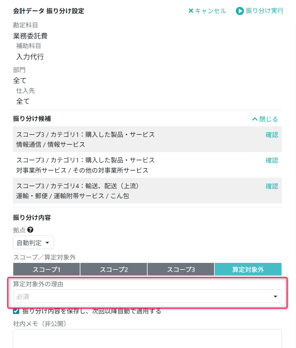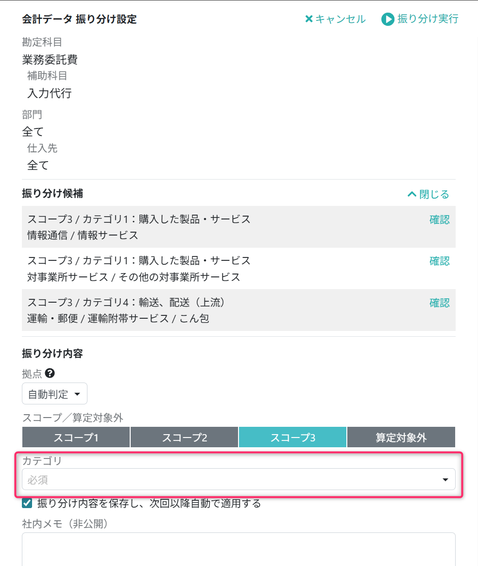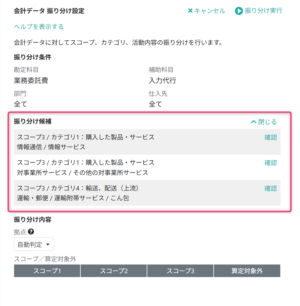 会計データをスコープ/カテゴリ/活動内容に振り分ける