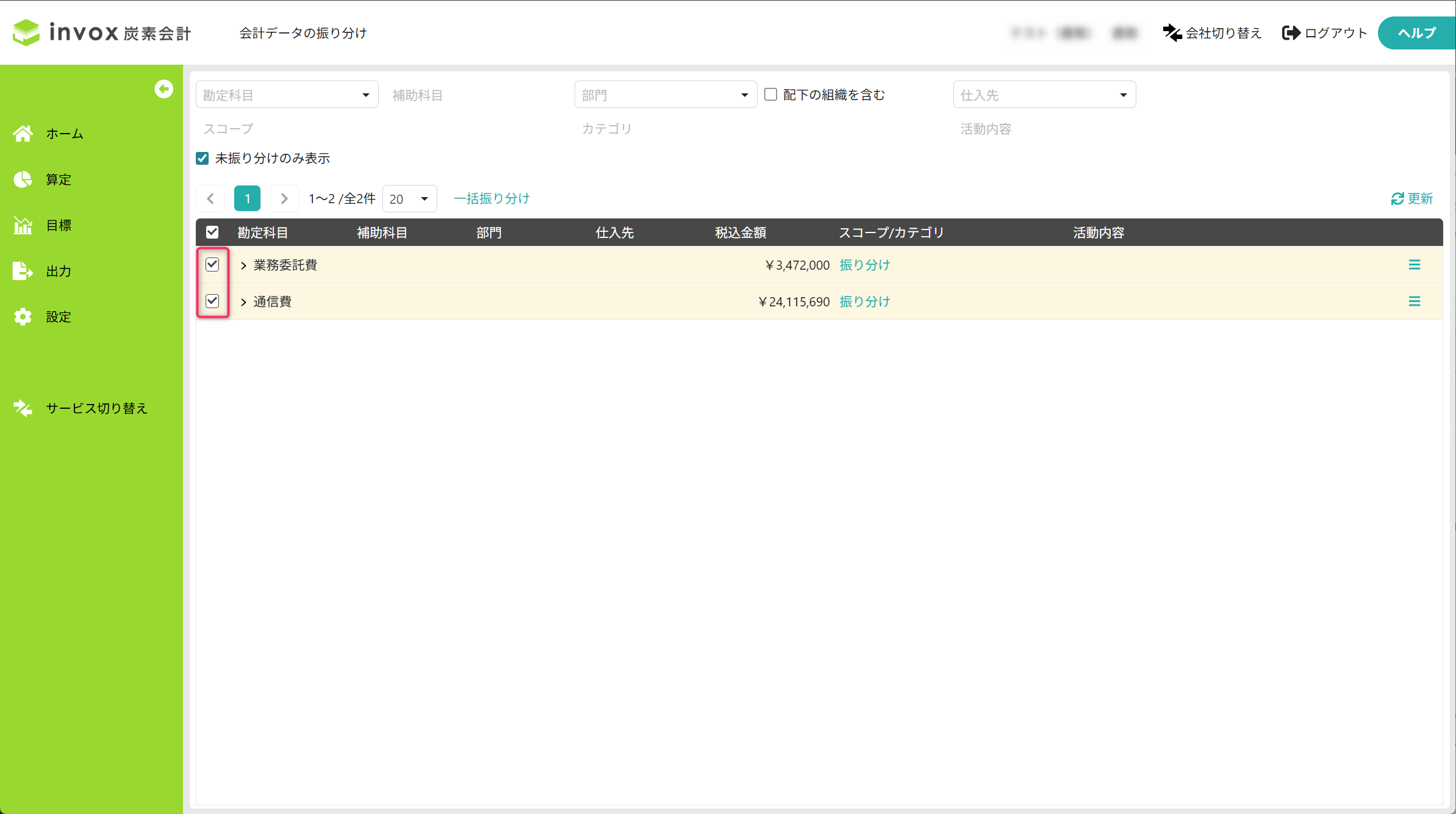2. 一括振り分け対象の会計データを選択する