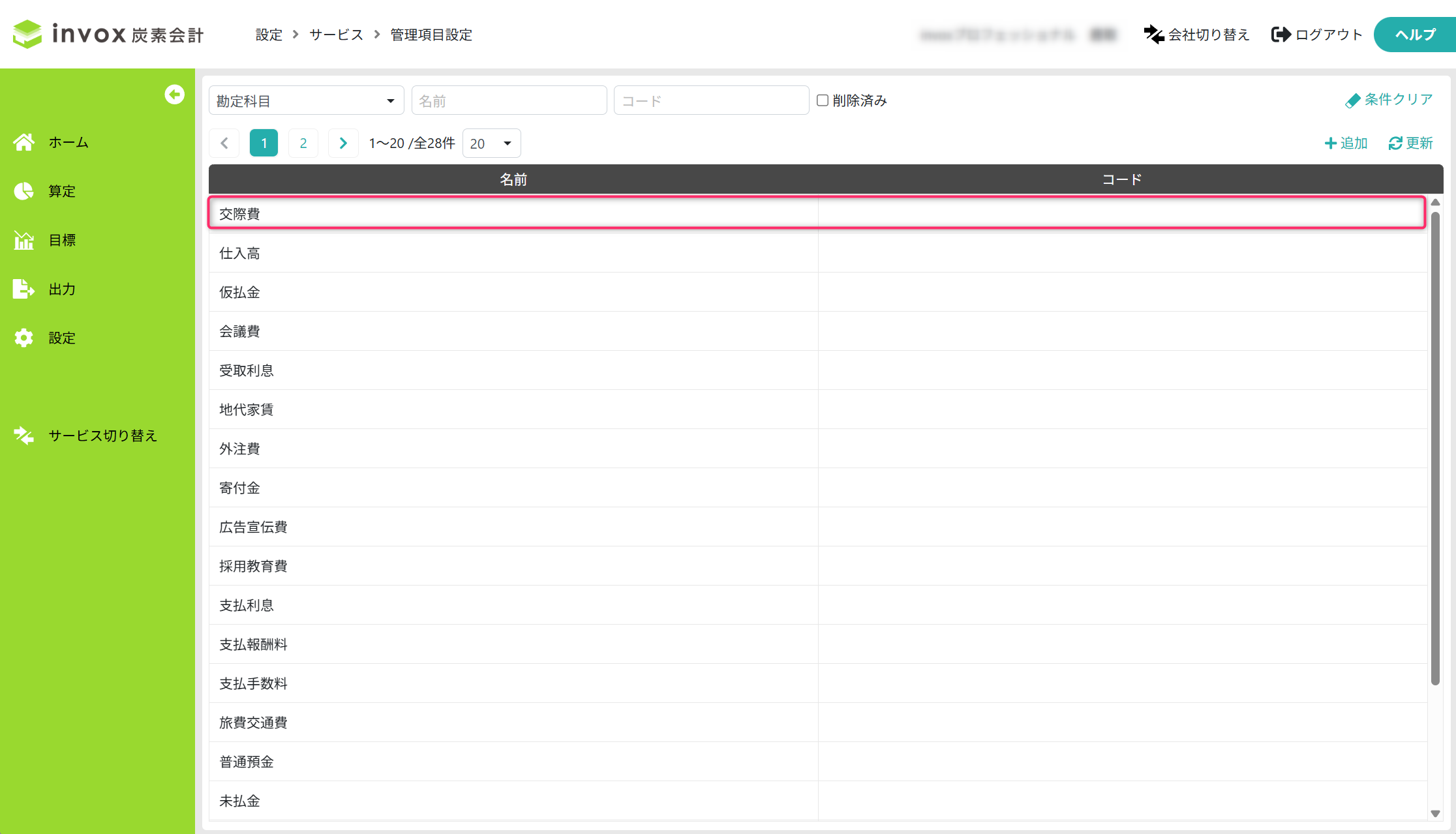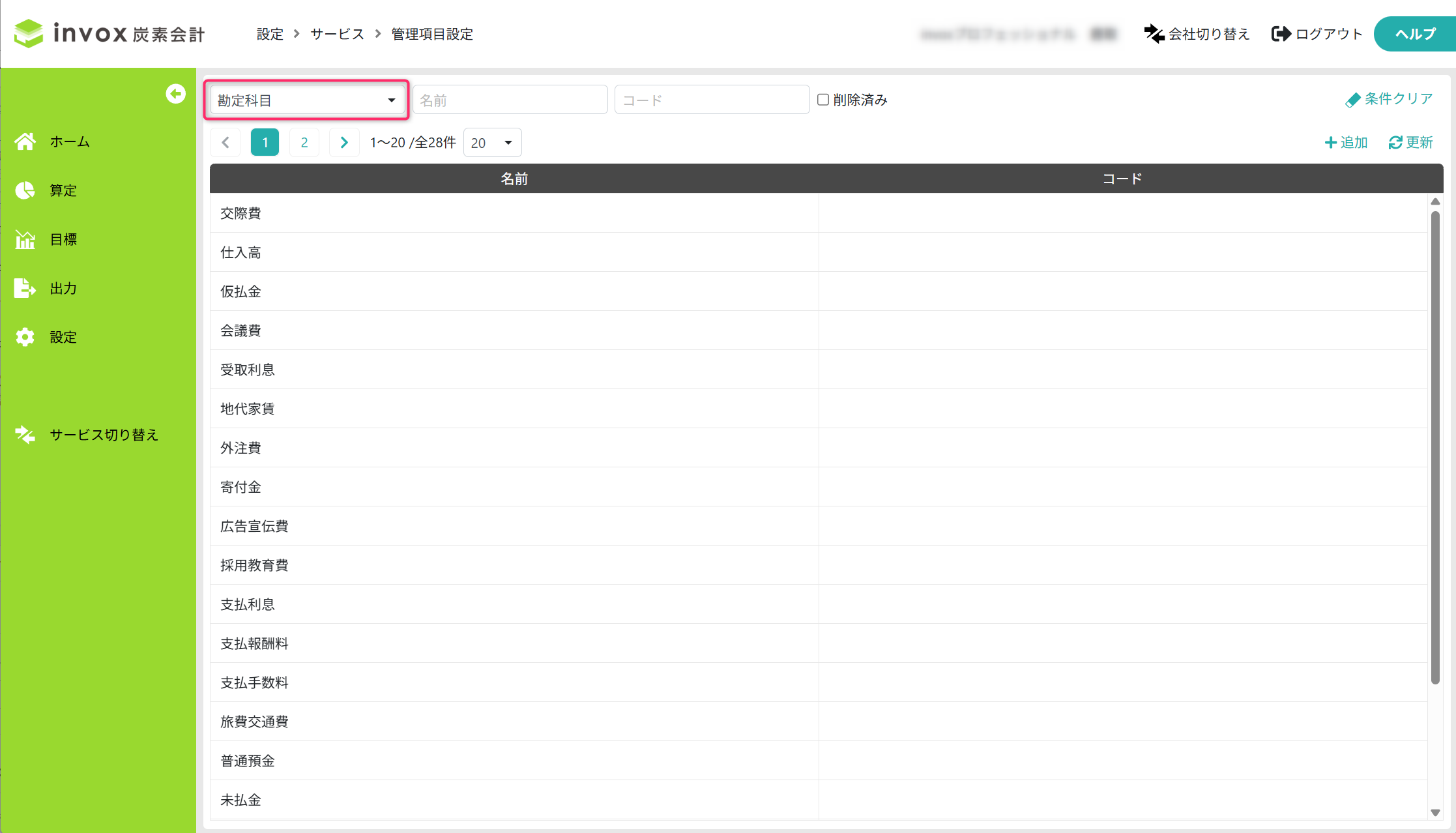 このページでは、登録済みの勘定科目を変更または削除する方法を説明します。
