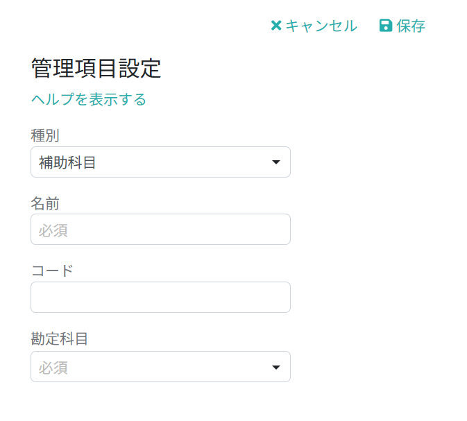 登録する補助科目コードを入力します。必要に応じて設定してください。