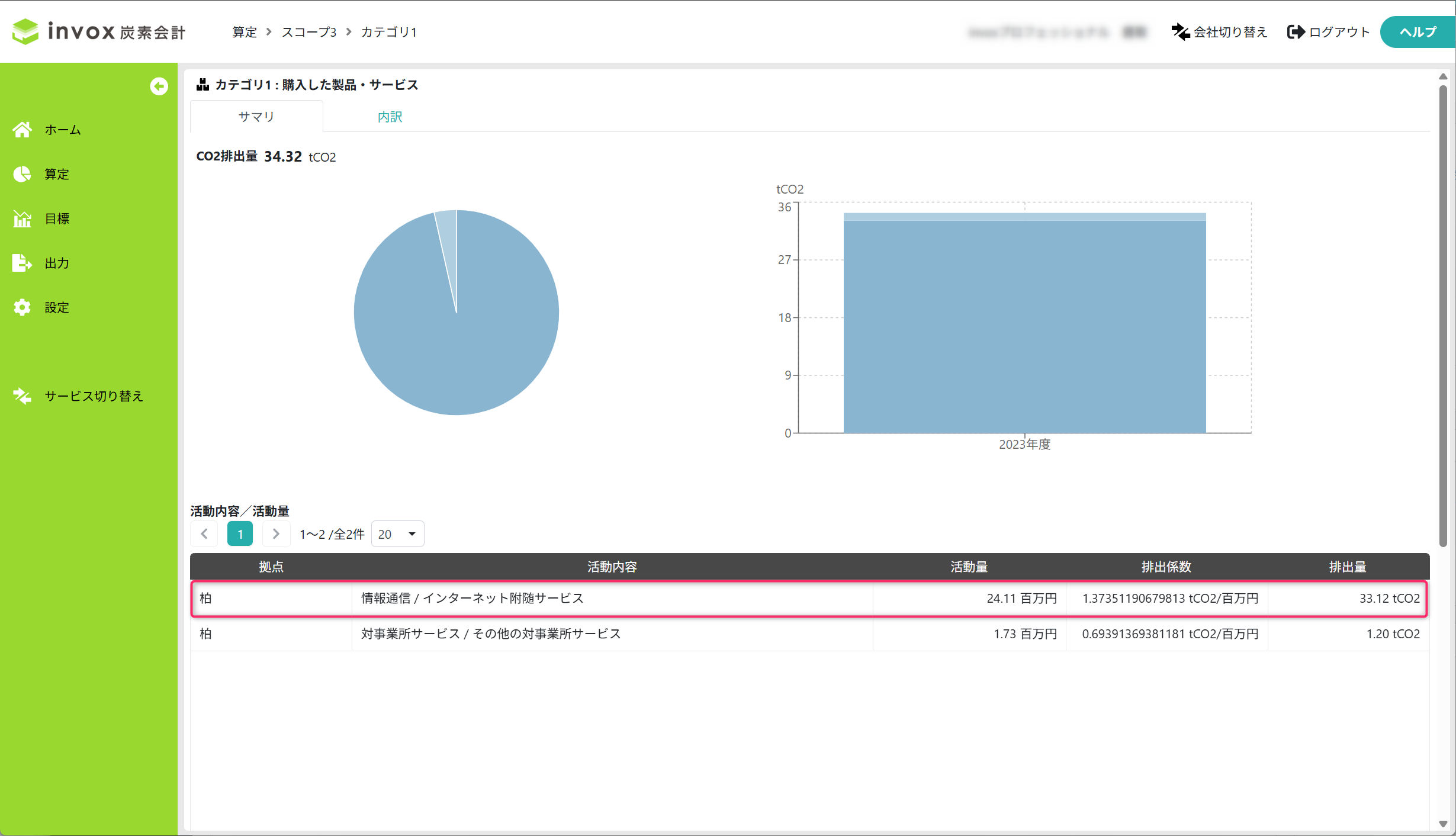 2. 詳細化するカテゴリを開く(スコープ3の場合)