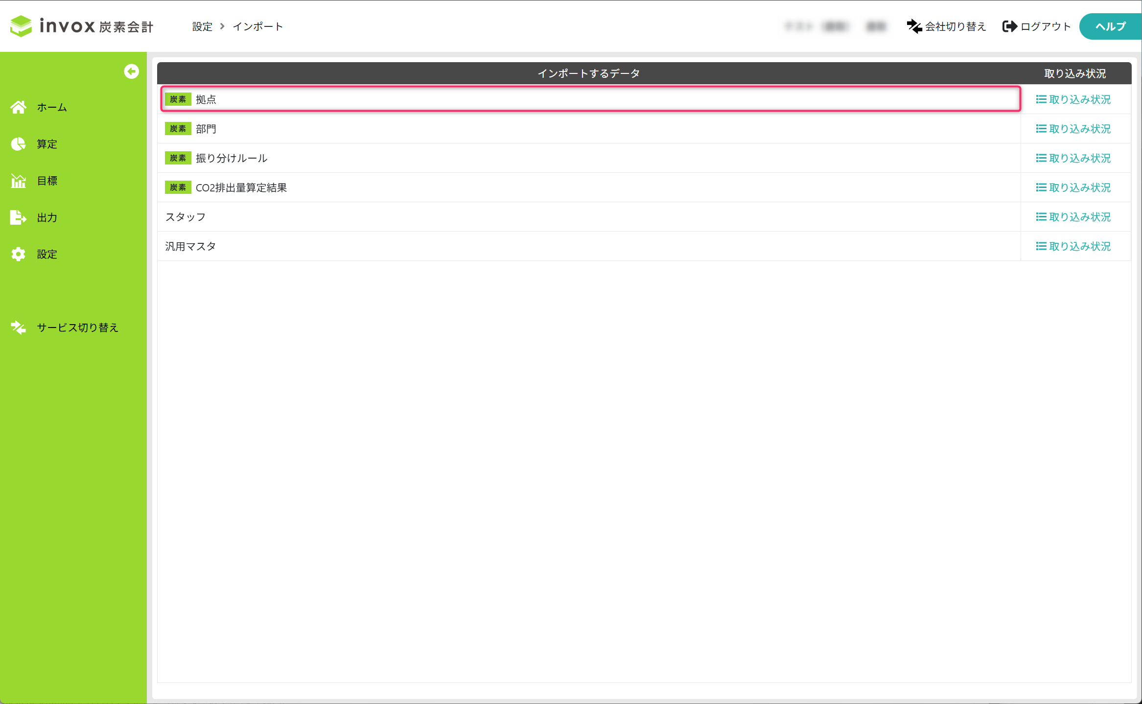インポートでは、拠点名を基準に既存データを判定します。