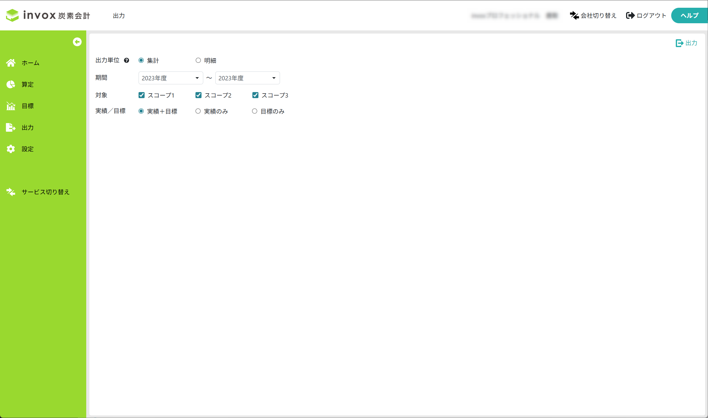 スコープ単位、またはカテゴリ単位(スコープ3のみ)の排出量の集計値が出力されます。