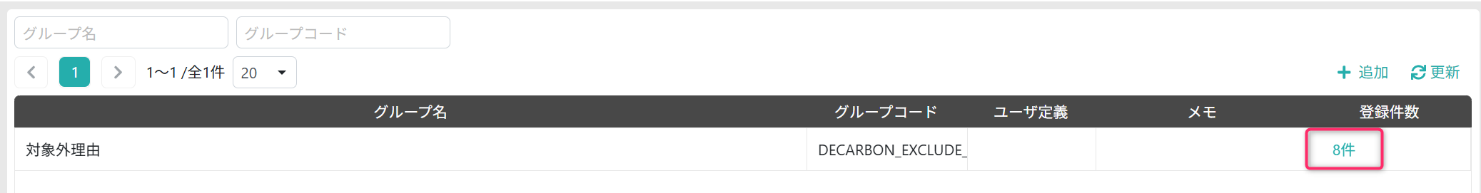変更対象の汎用マスタが紐づく汎用マスタグループの「登録件数」をクリックします。