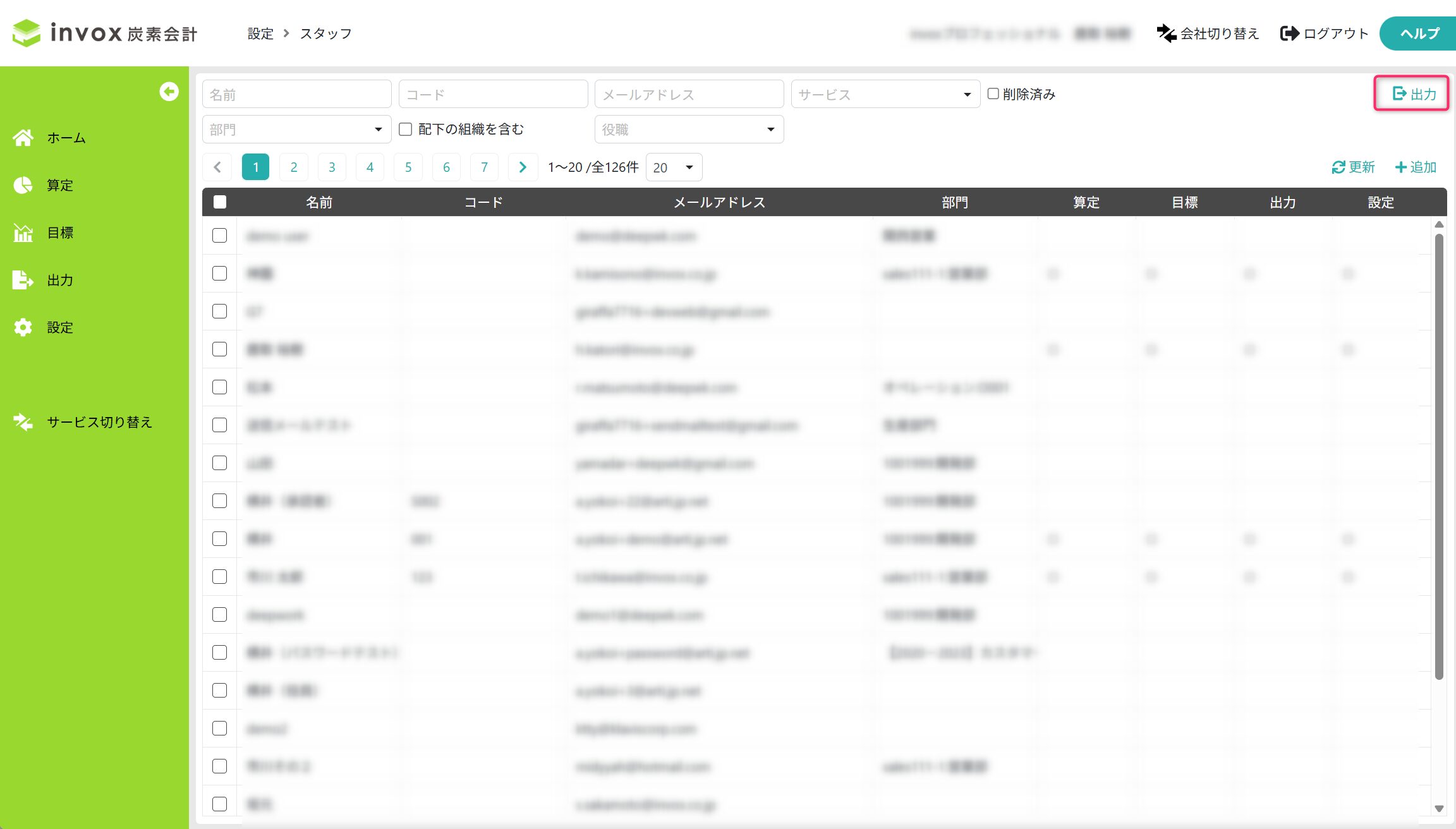 このページでは、登録済みのスタッフマスタをCSVファイルで出力する方法を説明します。