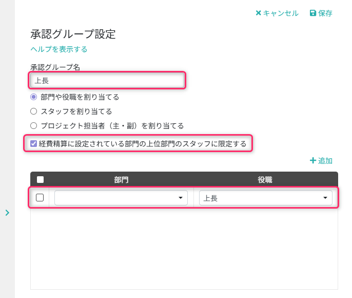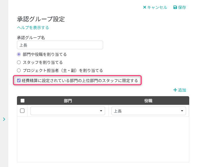 経費精算に設定されている部門の上長のみに承認者を限定したい