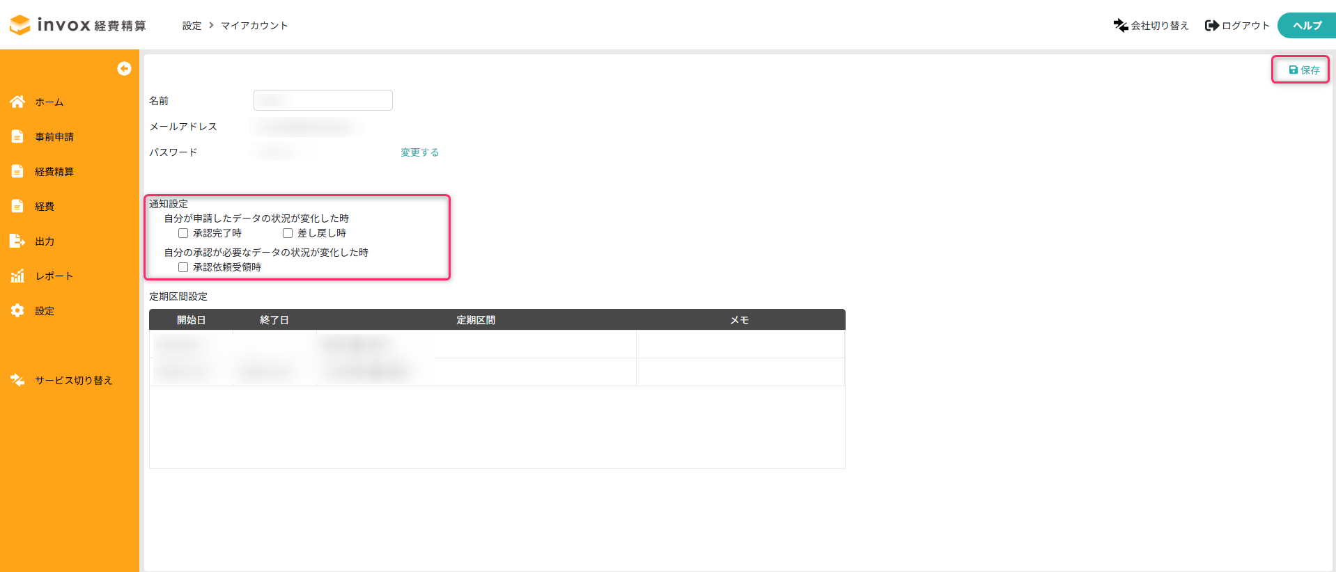 受け取りたい通知を選択して、右上の[保存]をクリックしてください。