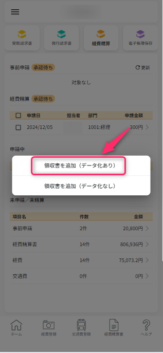 カメラ撮影して経費を追加