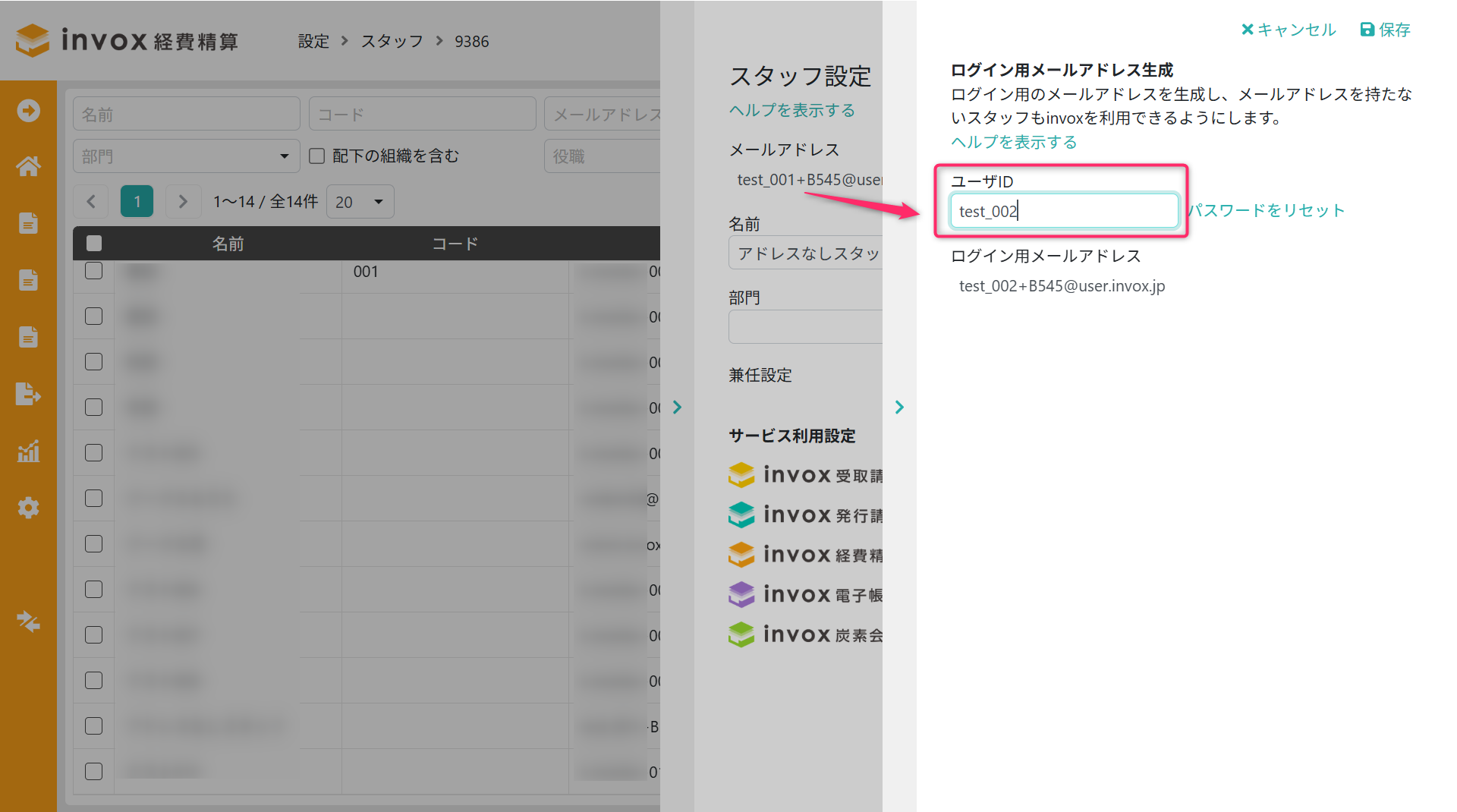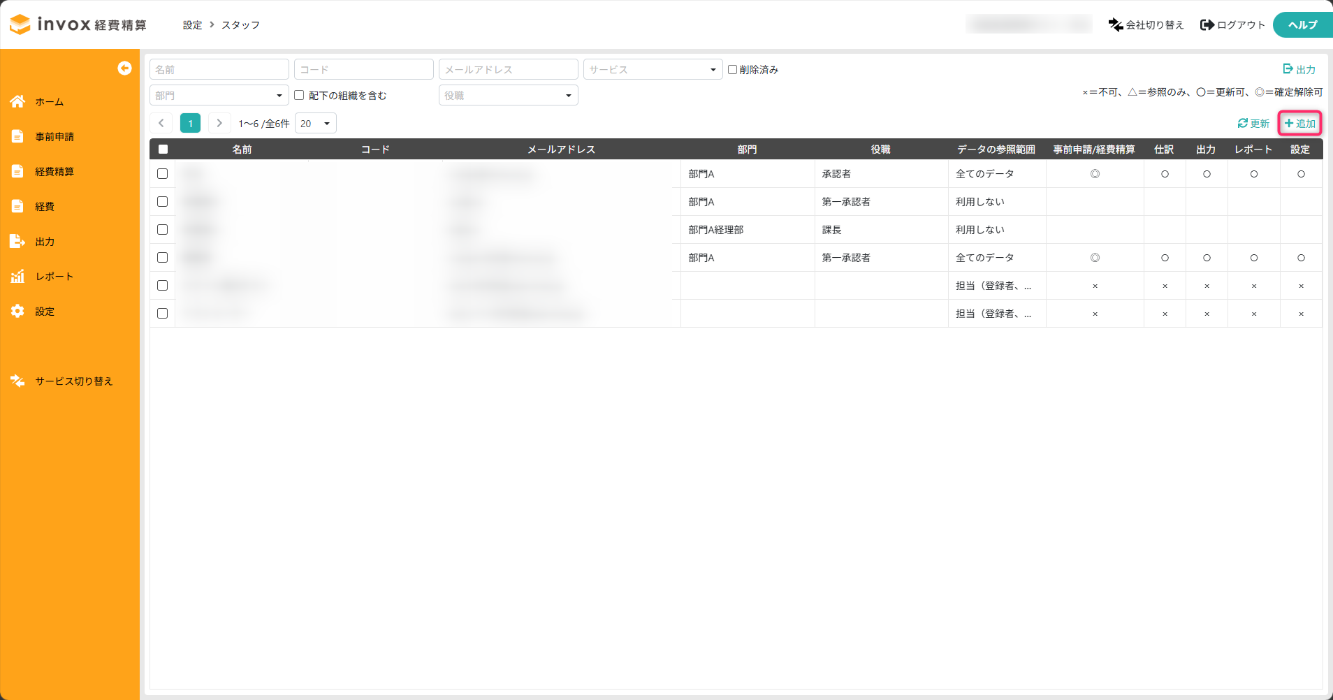 invox経費精算へのスタッフの追加は以下のステップで行います。