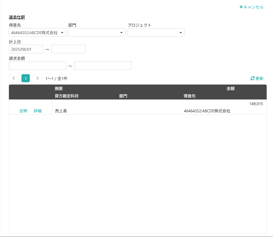 ※確定された請求書の仕訳が、過去仕訳として表示されます
