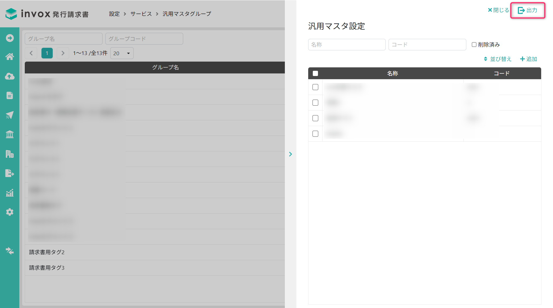 invox発行請求書の汎用マスタグループではタグや請求項目設定、請求明細項目設定で使用する簡易的なマスタの設定を変更できます。