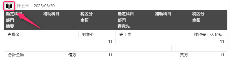 仕訳辞書マークをクリックすると、仕訳辞書の登録、または編集ができます。
