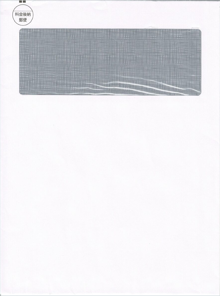 A4サイズの請求書が請求書6枚までは定型の窓あき封筒に、7枚以上は定形外の窓あき封筒で郵送されます。