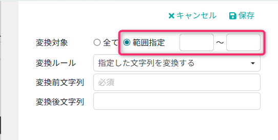 「文字列の変換」で読み取った文字列に対し、変換対象とする範囲を指定することも可能です。