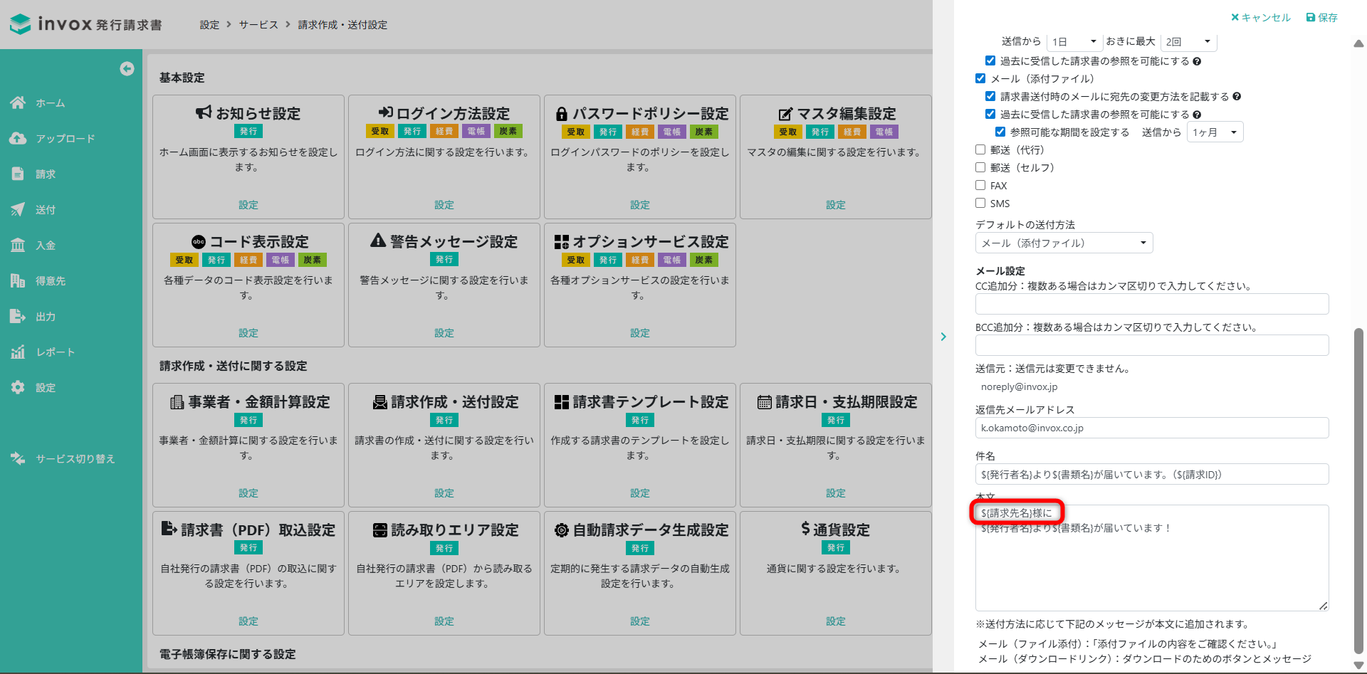 詳細は請求作成・送付設定をご覧ください。