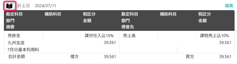 仕訳辞書の登録は、請求書画面の仕訳辞書マークから行えます。