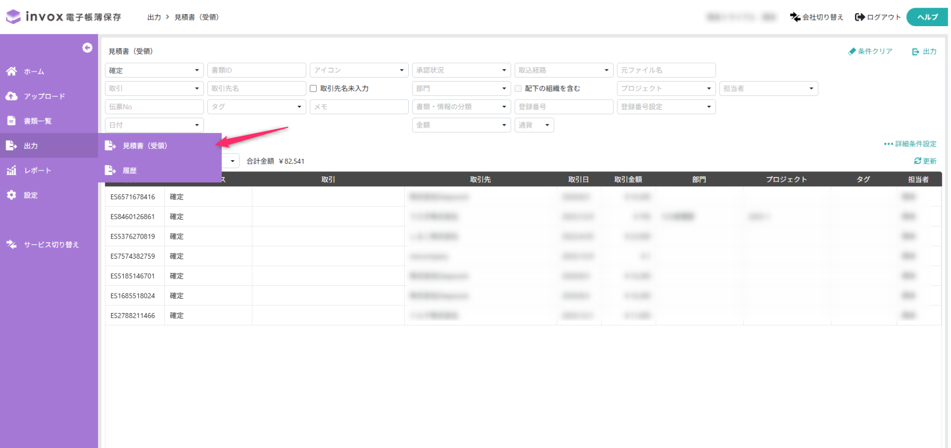 invox電子帳簿保存の出力設定では書類ごとのデータの出力に関する設定を行います。