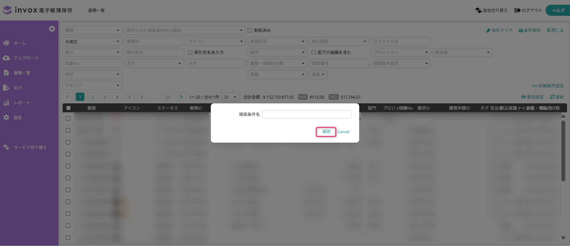 よく使う検索条件を保存し、次回以降呼び出せるようにします。
