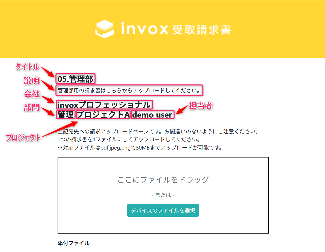 例:https://web.invox.jp/upload_page?id=invoice.U123456